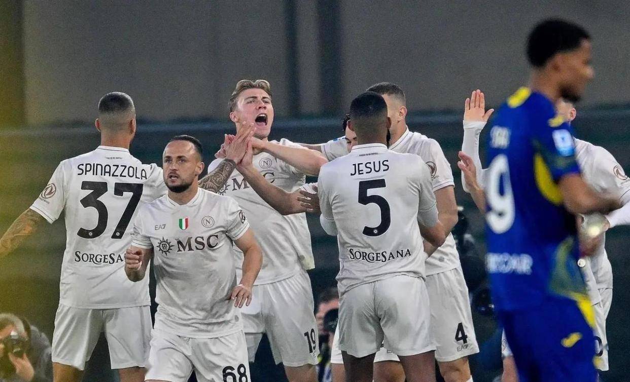 那不勒斯客场挑战联赛副班长维罗纳的比赛,开场仅2分钟就掀起波澜。 夏季新援霍伊伦在禁区内接到传中,用一记角度刁钻的头球吊射攻破了蒙蒂普把守的球门,为客队取得梦幻开局。 然而,领先后的那不勒斯并未能扩大优势,反而在下半场第64分钟被维罗纳扳平比分,阿克普罗在禁区线附近的射门经过折射入网。 比赛似乎要朝着一场令人失望的平局发展,尤其是考虑到那不勒斯此前已经连续三场比赛未能取胜。